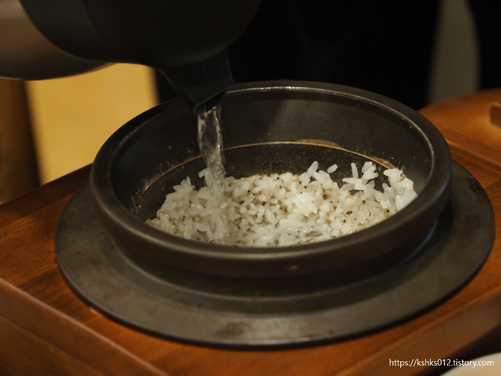 돌솥에 물을 부어주면 맛있는 누룽지가 되는데요.