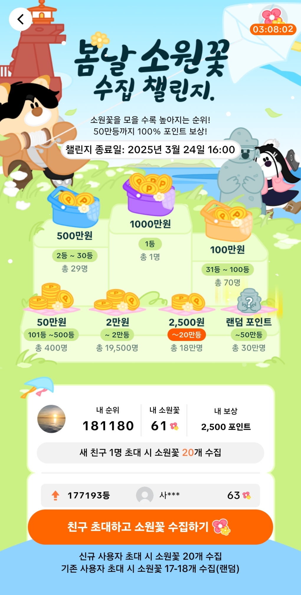 보상을 받을 수 있는 미션인데 두 명의 친구를 초대해야 하고